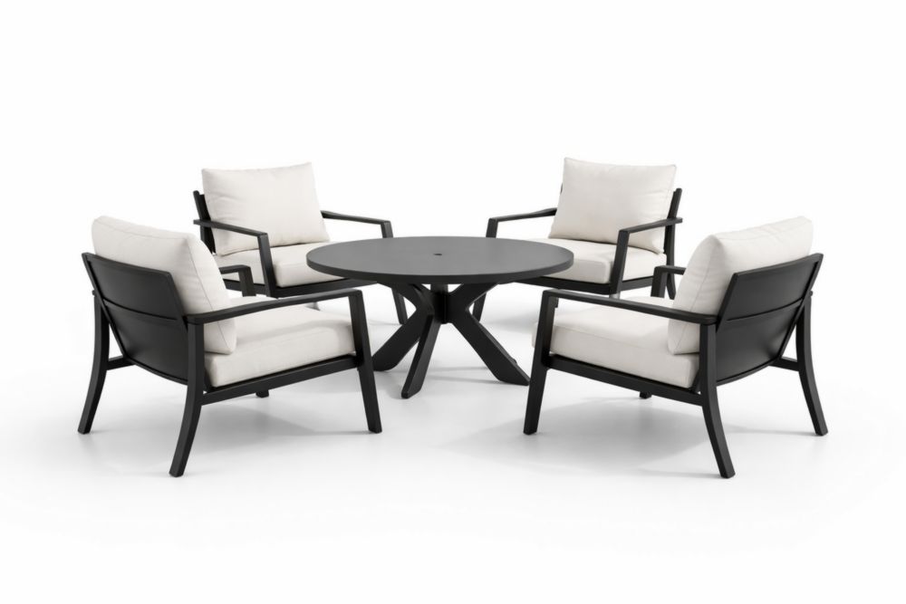 Outdoor Patio Furniture Set with Aluminum Frame and Cushioned Chairs Round Table Black and White