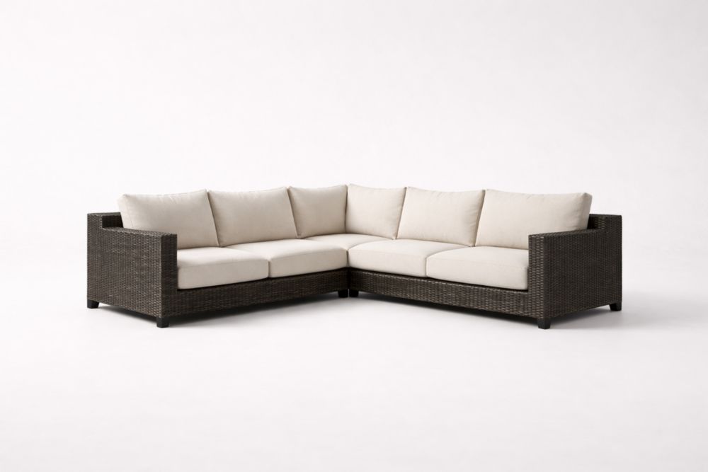 L-Shaped Wicker Outdoor Sectional Sofa with Beige Cushions