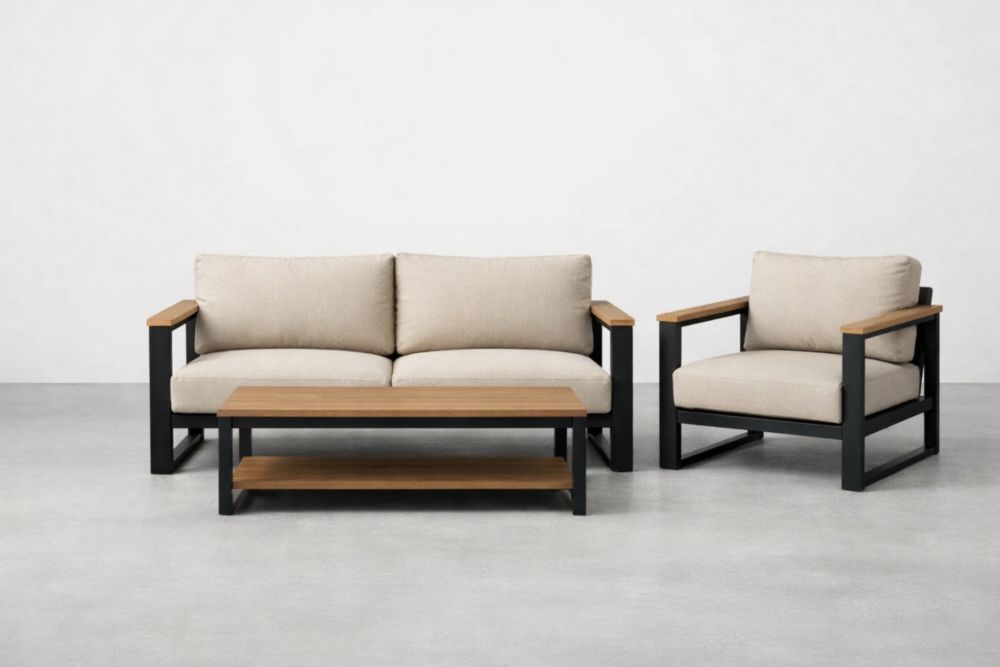 Outdoor Patio Furniture Set with Beige Cushions and Metal Frame