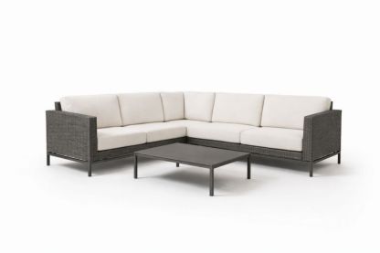 Outdoor Sectional Sofa Set Aluminum Frame Polyethylene Wicker Beige Cushions L-Shaped with Table
