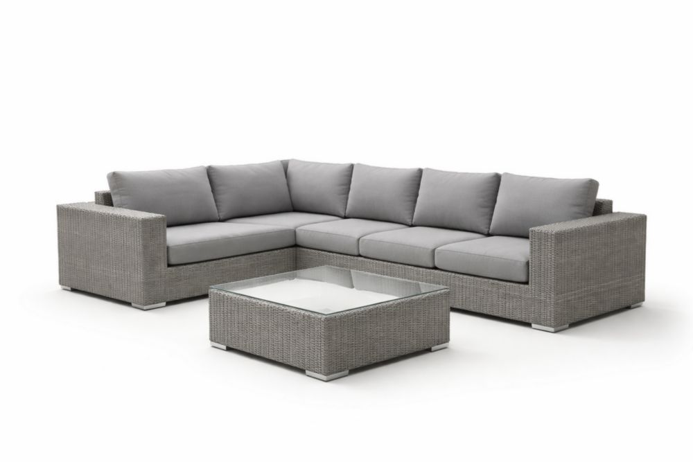 Outdoor Sectional Sofa Set with Cushions PE Rattan Corner with Glass Top Coffee Table Gray