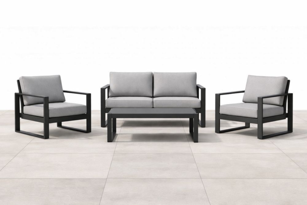 Outdoor Sofa Set Aluminum Frame Gray Cushioned Chairs and Table