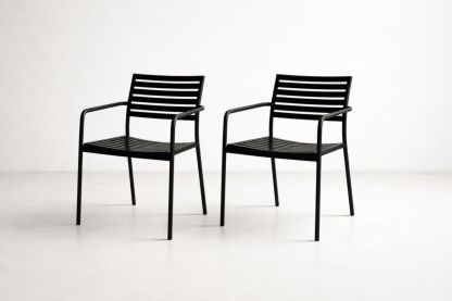Set of 2 Black Aluminum Outdoor Armchairs with Slatted Design